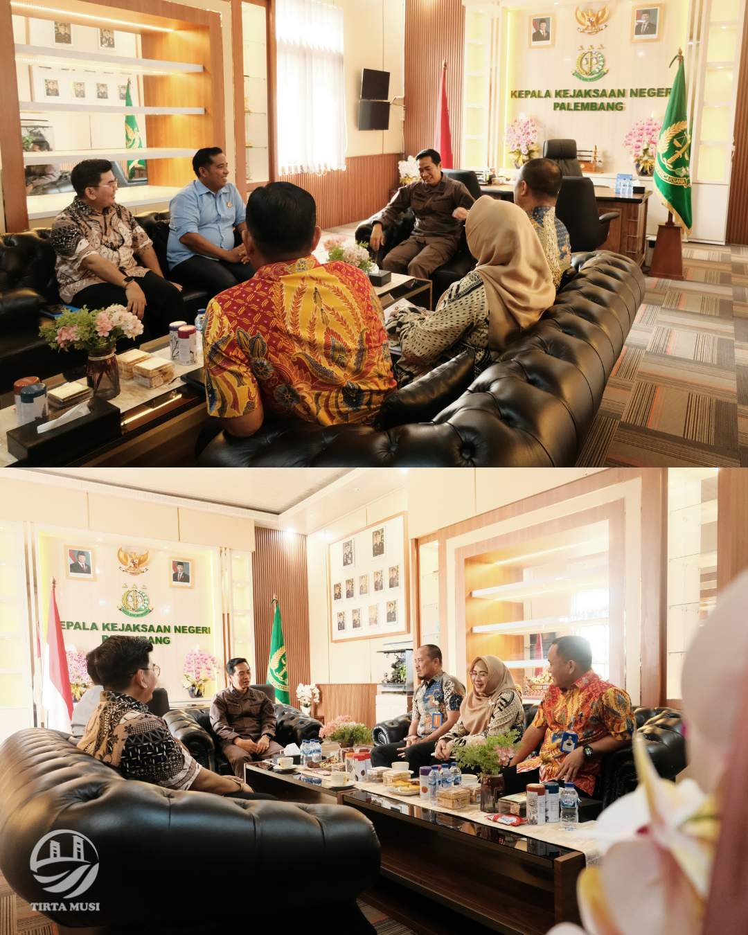 Plt. Direktur Utama, M. Azharuddin, ST, Direktur Umum, Hadri, ST, Sekretaris Perusahaan, serta Manager Hukum dan Humas Perumda Tirta Musi melakukan kunjungan audiensi ke Kantor Kejaksaan Negeri Palembang dalam rangka silaturahmi dengan Kepala Kejaksaan Negeri Palembang, M. Ali Akbar, S.H.,M.H di dampingi Kepala Seksi Pedata dan TUN Bapak Aci Jaya Saputra, S.H.,M.H. Silaturahmi ini juga sebagai upaya mempererat sinergi dan koordinasi dalam mendukung tata kelola perusahaan yang baik.