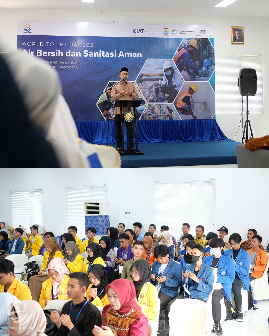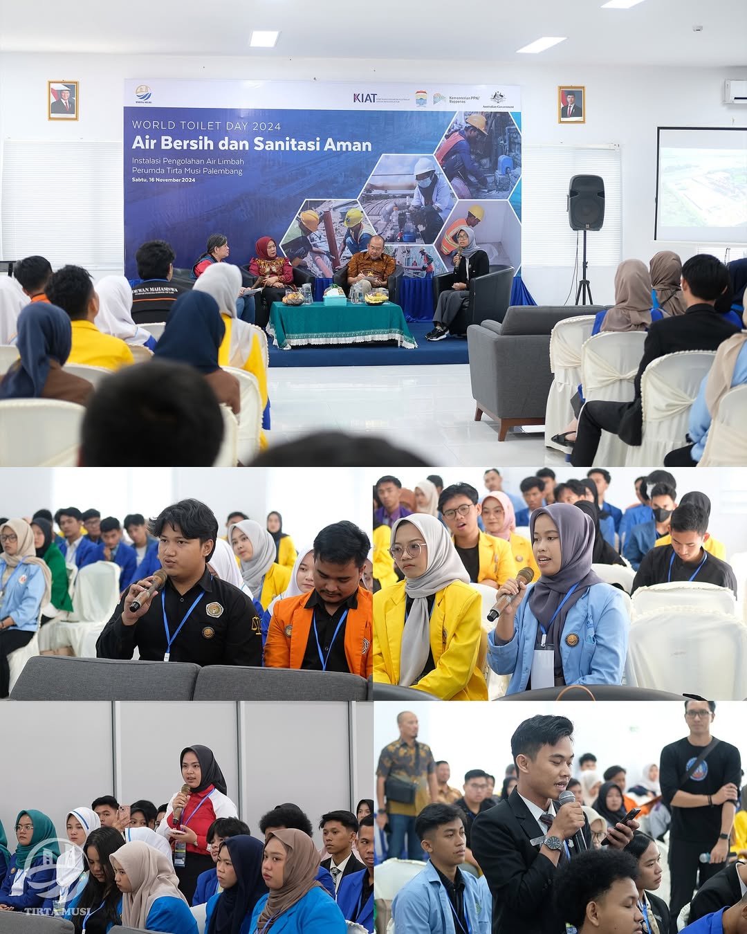 Kegiatan Seminar World Toilet Day 2024 di Instalasi Pengolahan Air Limbah (IPAL) Perumda Tirta Musi Palembang di Sungai Selayur ini dihadiri oleh pj. Walikota Palembang, Dr. A. Damenta, Mag.rer.publ., CGCAE, Plt. Asisten II Bidang Perekonomian dan Pembangunan, Rudi Indawan, SH, M.Kn., Kepala Dinas LH Kota Palembang, Dr. H. Akhmad Mustain, S.STP., M.Si, Kabag Protokol Kota Palembang, Jajaran Direksi dan Dewan Pengawas Perumda Tirta Musi Palembang dan perwakilan para Mahasiswa dan Mahasiswi dari berbagai Perguruan Tinggi di Kota Palembang.