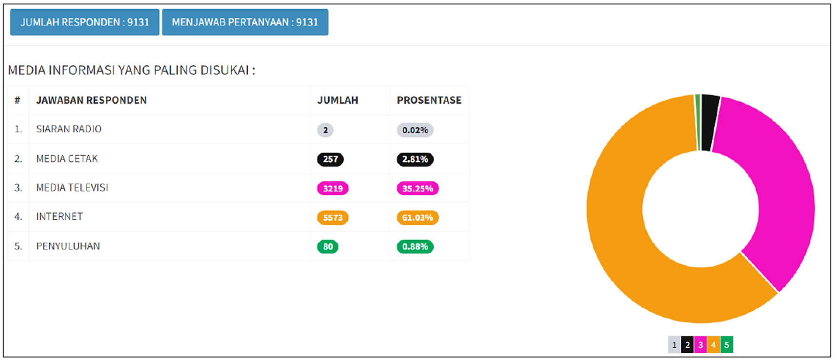 Berdasarkan Laporan Hasil Survei Kondisi Fasilitas Air Limbah Setempat yang telah dilakukan sebelumnya, diketahui bahwa internet adalah media informasi yang paling disukai.