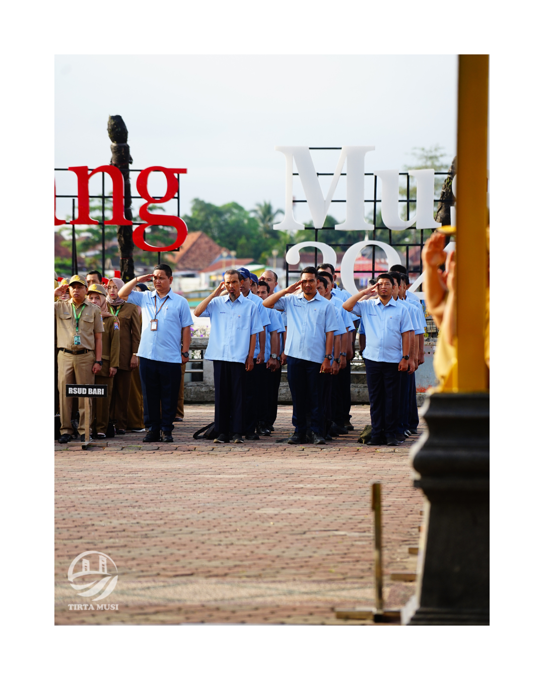 Direktur Utama, Andi Wijaya Adani beserta karyawan Perumda Tirta Musi mengikuti kegiatan Apel Pagi Bersama OPD Pemerintah Kota Palembang yang di pimpin langsung oleh Wakil Wali Kota Palembang, Prima Salam di Benteng Kuto Besak Kota Palembang.