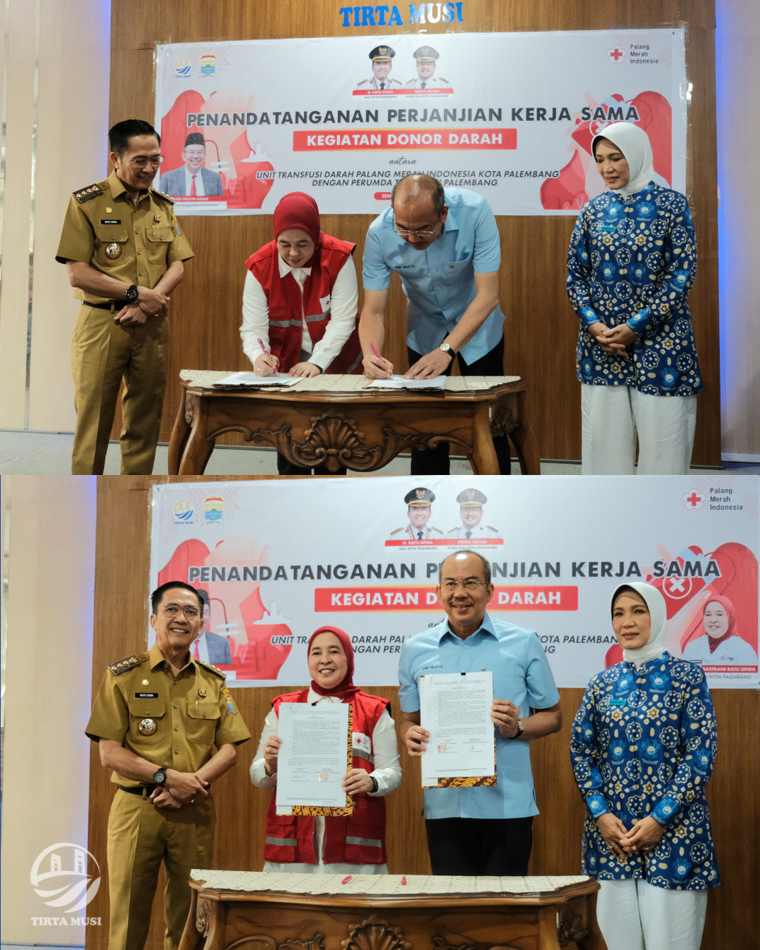 Penandatanganan ini dilakukan langsung oleh Direktur Utama Perumda Tirta Musi Palembang, Andi Wijaya Adani, dan Ketua PMI Kota Palembang, Hj. Dewi Sastrani Ratu Dewa, sebagai wujud nyata komitmen kedua lembaga dalam mendukung upaya penyediaan stok darah yang aman, cukup, dan berkualitas bagi masyarakat Palembang dan sekitarnya.
