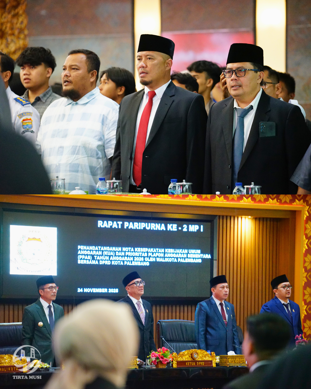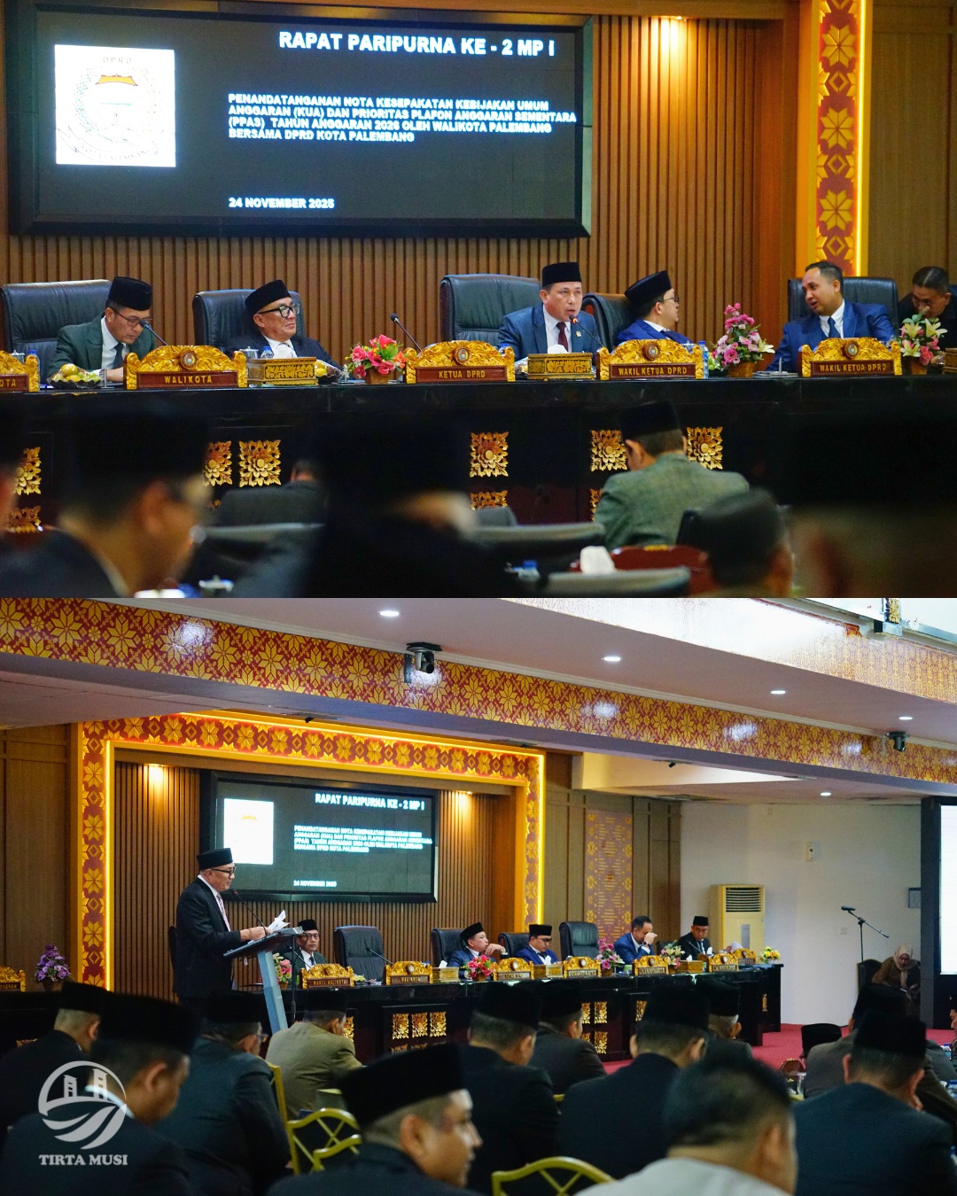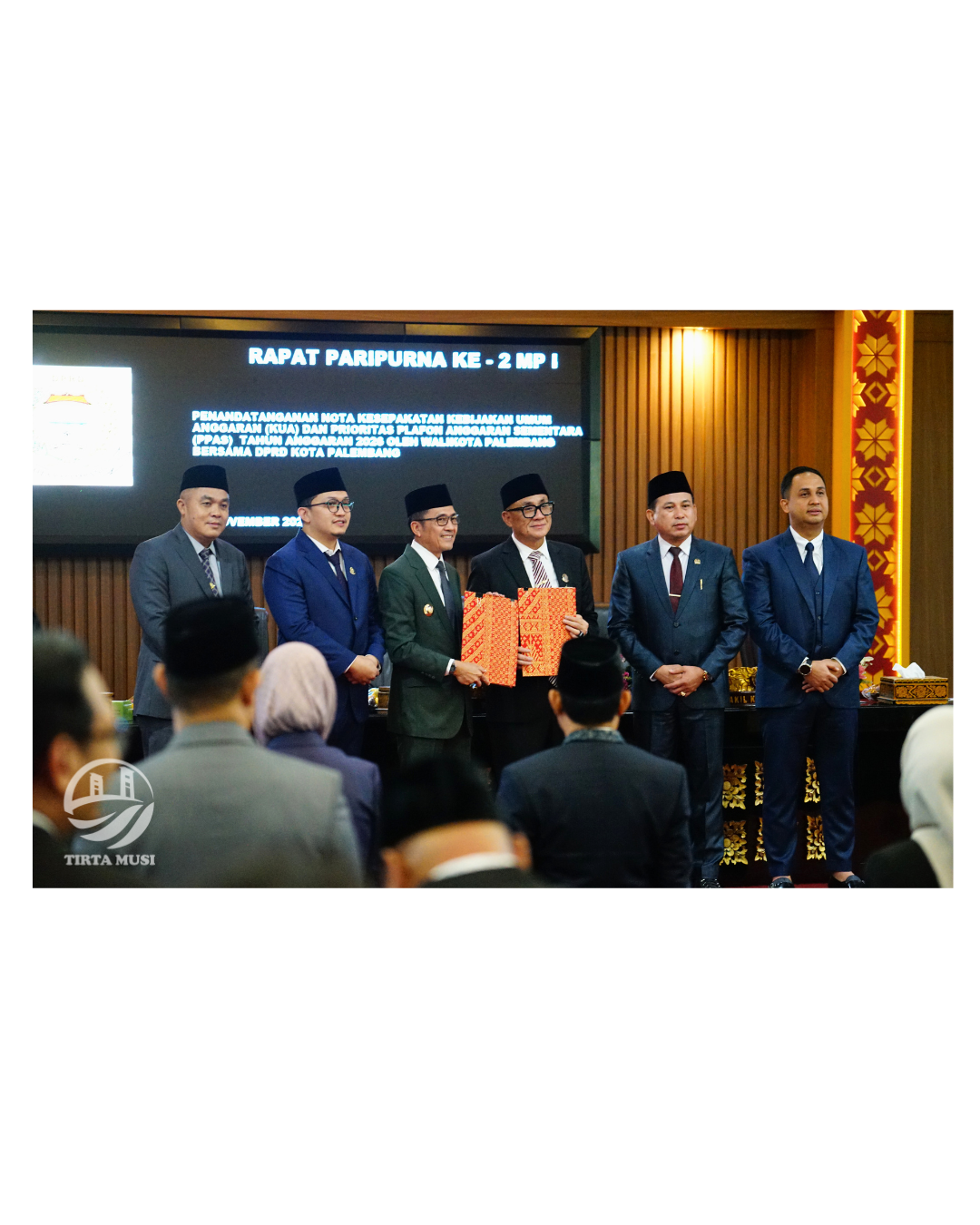 Rapat paripurna ini berlangsung khidmat dan tertib, menandai langkah strategis Pemerintah Kota Palembang dalam menyusun arah kebijakan pembangunan dan pengelolaan anggaran untuk tahun mendatang. Penandatanganan KUA–PPAS 2026 menjadi dasar penting bagi penyusunan RAPBD, sekaligus menunjukkan komitmen bersama antara eksekutif dan legislatif dalam mewujudkan tata kelola pemerintahan yang transparan, akuntabel, serta berorientasi pada pelayanan publik. Kegiatan ini dihadiri oleh Plt. Direktur Utama Perumda Tirta Musi Palembang, M. Azharuddin, ST.