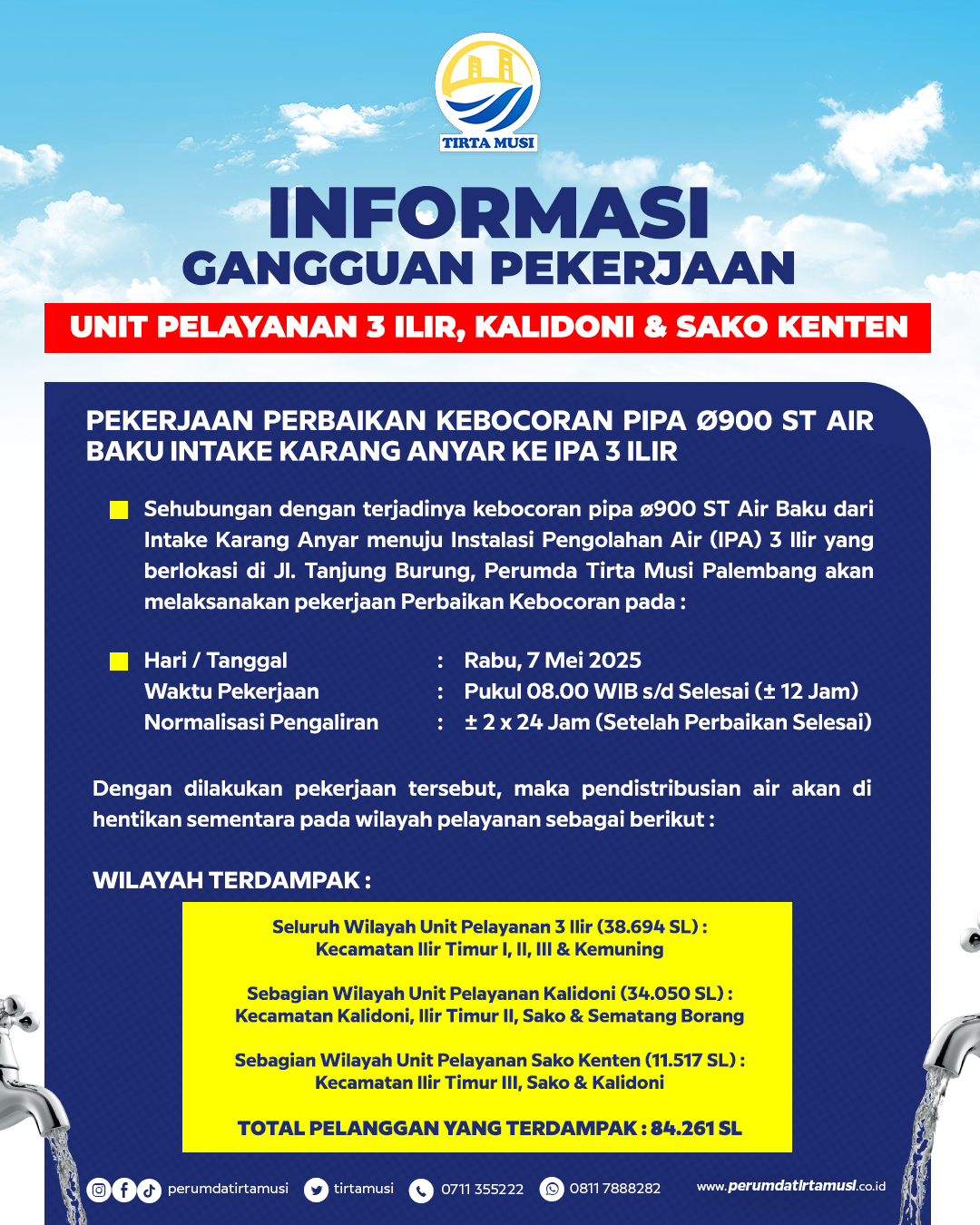 Pekerjaan Perbaikan kebocoran Pipa Ø900 ST Air Baku Intake Karang Anyar ke IPA 3 Ilir