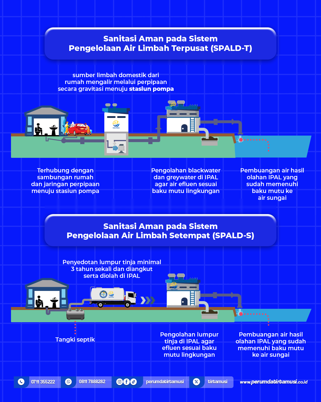 Bukan cuma sampah plastik yang harus dikelola, air limbah domestik juga wajib dapet perhatian biar lingkungan kita nggak tercemar! Nah, @perumdatirtamusi punya solusinya lewat SPALD (Sistem Pengelolaan Air Limbah Domestik). 💧✨