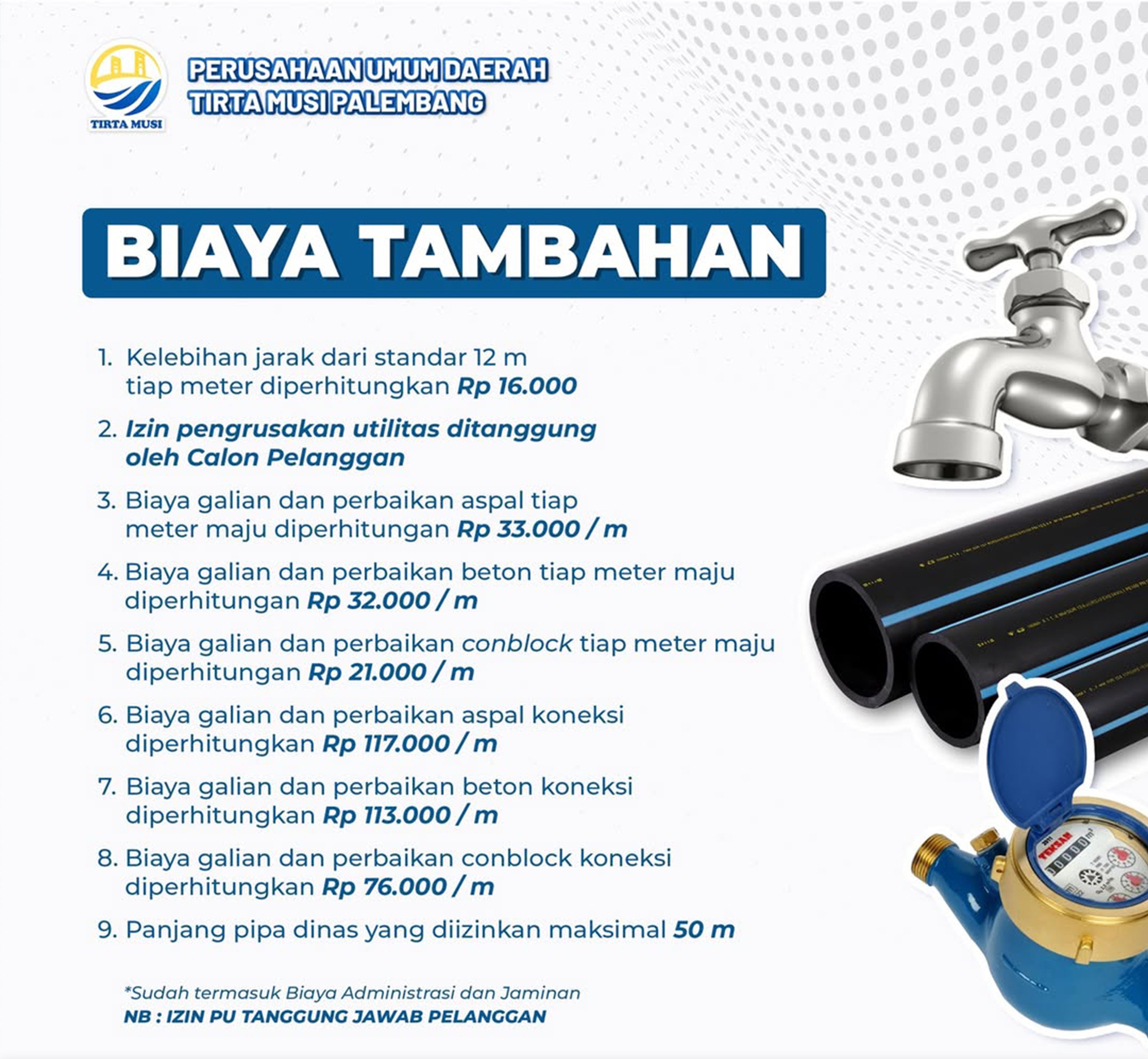 Sahabat Banyu, berikut Persyaratan, Biaya Pemasangan Baru untuk calon pelanggan Perumda Tirta Musi Palembang dan juga persyaratan jika pelanggan ingin melakukan Balik Nama.